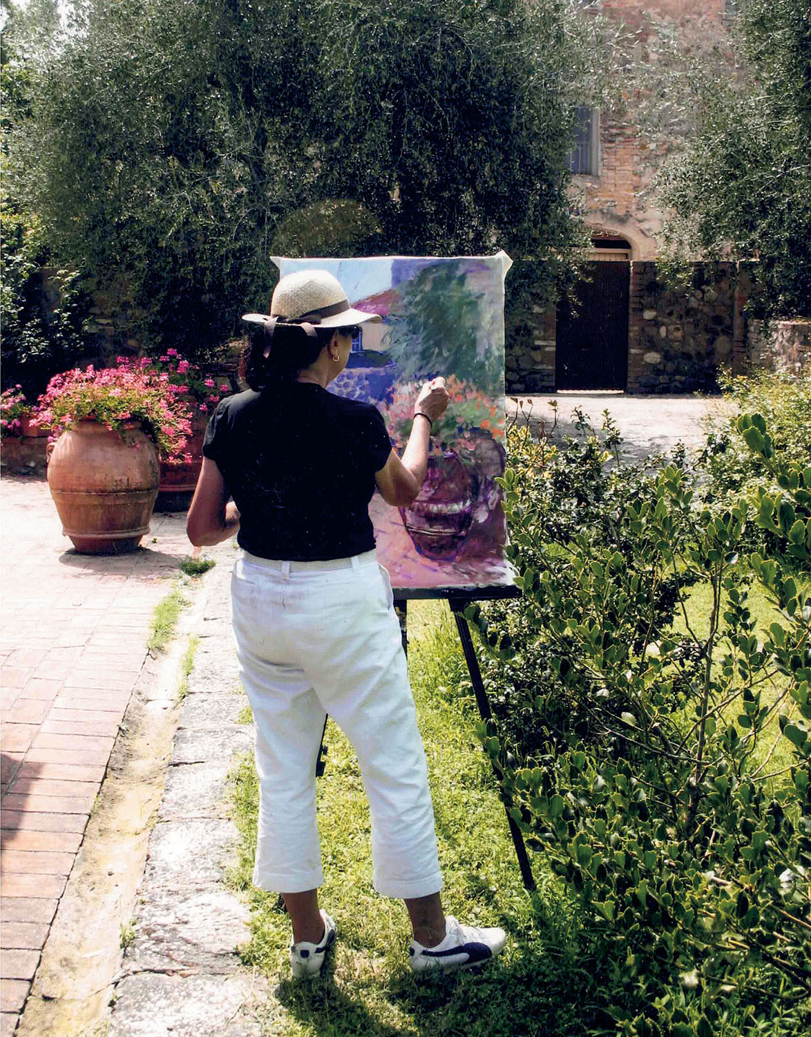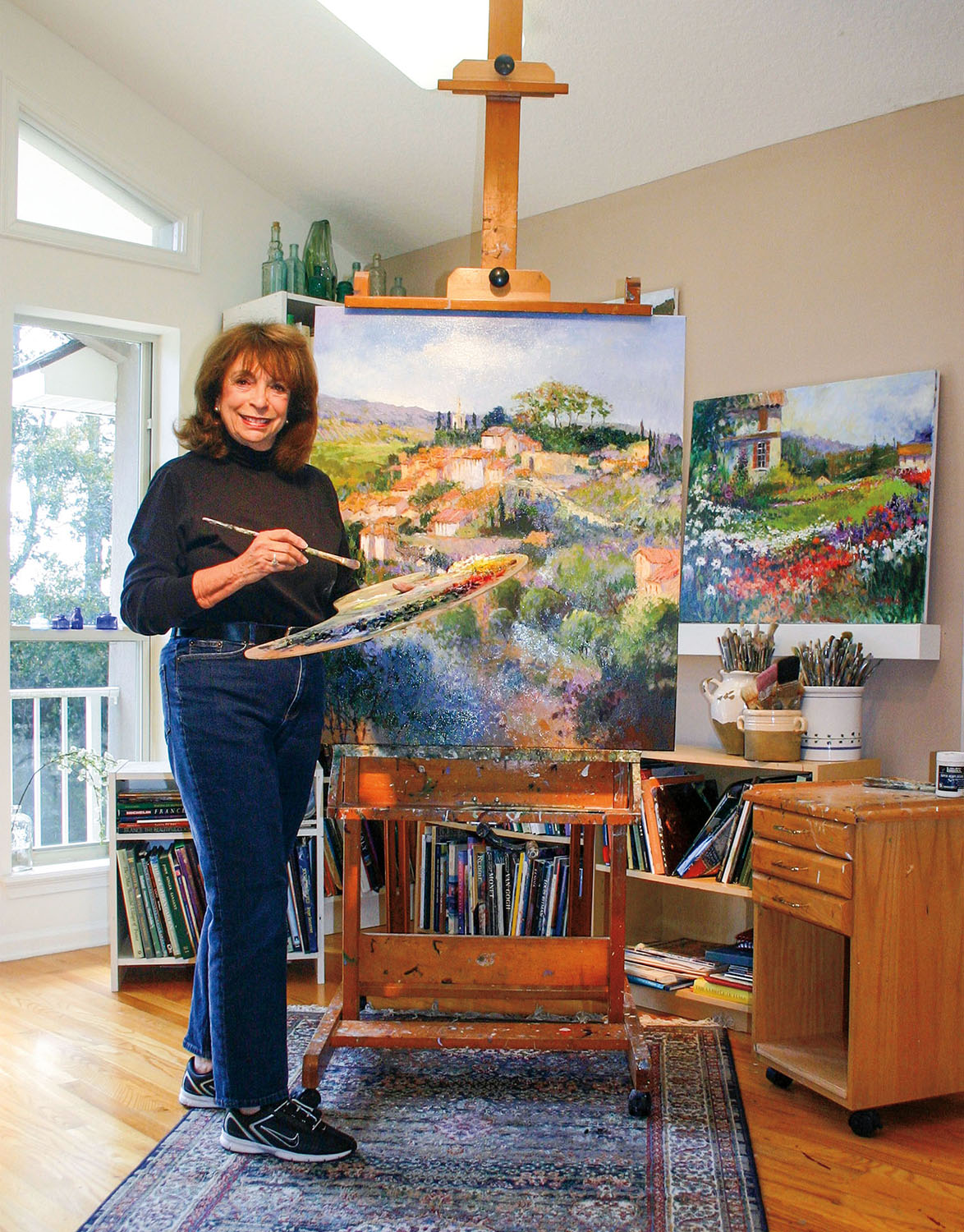 Her works took on significant meaning when she made her first trip to Provence where she was mesmerized by the landscape filled with light, replete with colors and shapes that quickly inspired her to translate the breathtaking scenery of Avignon, Aix-en-Provence, Les Baux, Antibes and other Provencal towns into masterful works of art in her unique contemporary impressionistic style. Her love of Provence has taken her back to that dreamlike setting summer after summer where every breath she takes inspires her to make her palette come alive. During her time at home in Northern Florida, she is inspired by similar light, color and shape that captivates her in the Provencal towns. The marshes of this area have given her yet another setting in which her artistic talents can be realized. Although these landscapes are totally different, her imaginative work with color have made each an integral part of the other.